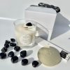 Lyset indeholder Black Obsidian – en kraftfuld krystal, der beskytter, styrker og fremmer klarhed. Den hjælper dig med at stå i din egen sandhed og rense din energi. Under brænding frigiver krystallen sin helende kraft, mens den knitrende trævæge skaber en rolig og nærværende stemning.